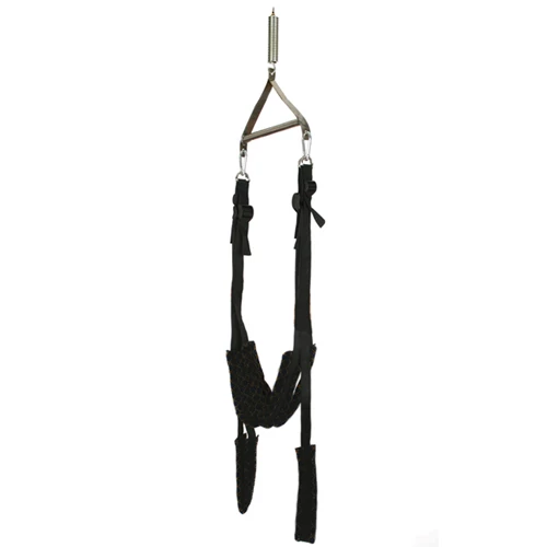 Enjoy extreme pleasures with the plush, comfortable and highly durable Ultimate Spinning Sex Swing from Bondara. You’ll discover new, exciting (and otherwise impossible!) erotic positions with this orgasmic piece of equipment. To handle your most passionate sexcapades, this durable swing features strong nylon straps as well as plush, velvet slings for your complete comfort. The high tension spring gives movement flexibility and allows for a soft and comfortable ride. It also includes two fully adjustable and padded back and butt support straps as well as two fully adjustable stirrups for feet, calves or thighs. And when the fun is done, you can unclip the swing and pack it away for total discretion. So take a load off and enjoy the ride – Your imagination is the only limit! A small amount of self-assembly is required, but that’s where the fun begins. To find out everything you need to know about the Ultimate Spinning Sex Swing, read our Sex Swing guide for handy tips and tricks. Please note: Due to the weight of the Spinning Sex Swing, it can only be sold to UK buyers. Please source your own ceiling hook from your local hardware store to suit your ceiling structure (joist, brick, wood, plaster or concrete). You are responsible for ensuring your swing is safely attached to a structurally secure area. Includes a fully adjustable double strap swing, two stirrup straps, a metal frame, a spring, bolts and clasps.
